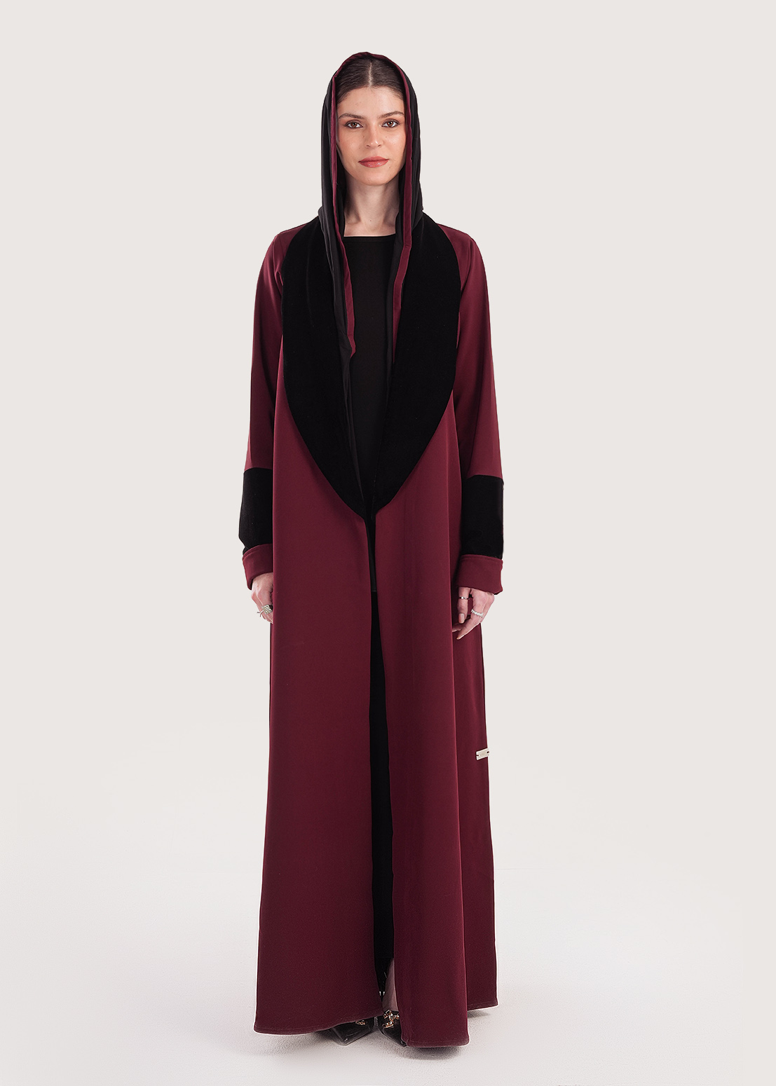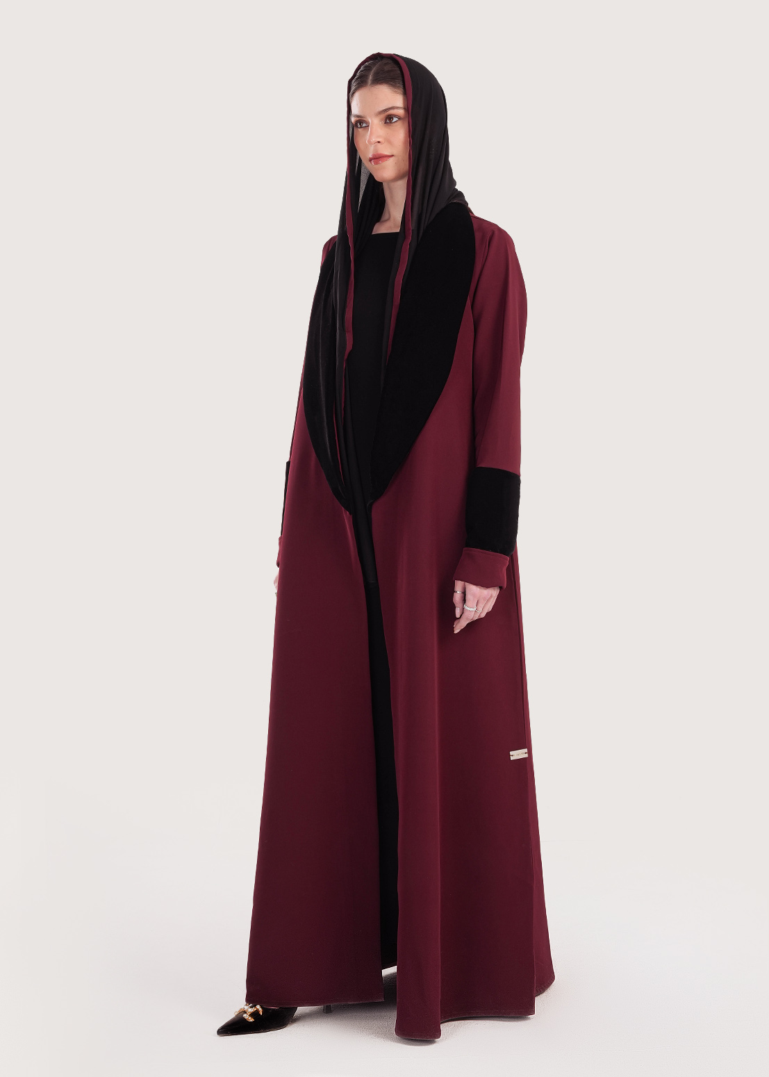 مواصفات عباية برغندي واسود قطيفة