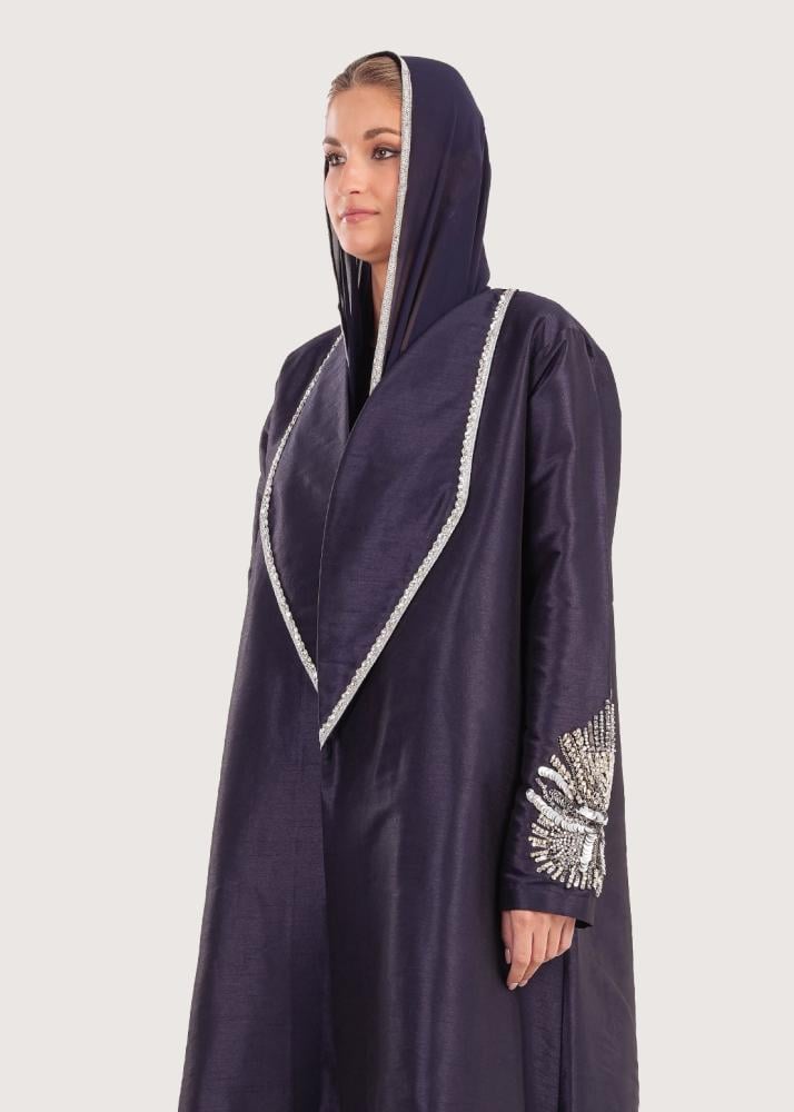 تضفي عباية تفته لمسة واضحة من الأناقة العملية والجاذبية البصرية من خلال تصميمها الكحلي المطرز بتقنيات دقيقة. اختيار القماش الثقيل يعزز الإحساس بالفخامة والراحة، فيما تبرز تفاصيل التطريز اليدوي المتقن مستوى الحرفية في التصميم. تمنح هذه القطعة حضورًا مميزًا بفضل ملمسها الناعم وانسيابيتها، مع توفر عدة مقاسات تناسب مختلف الأذواق.