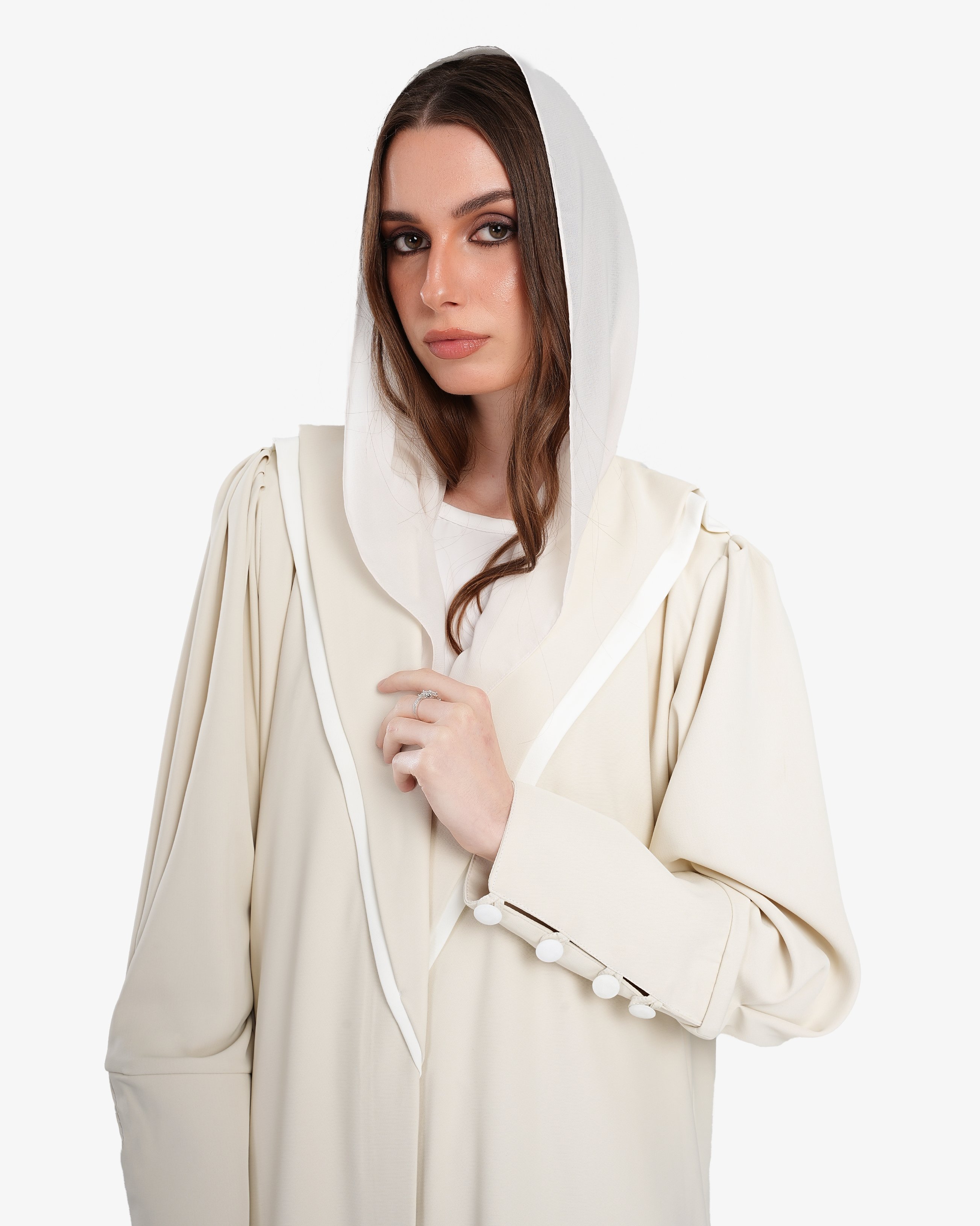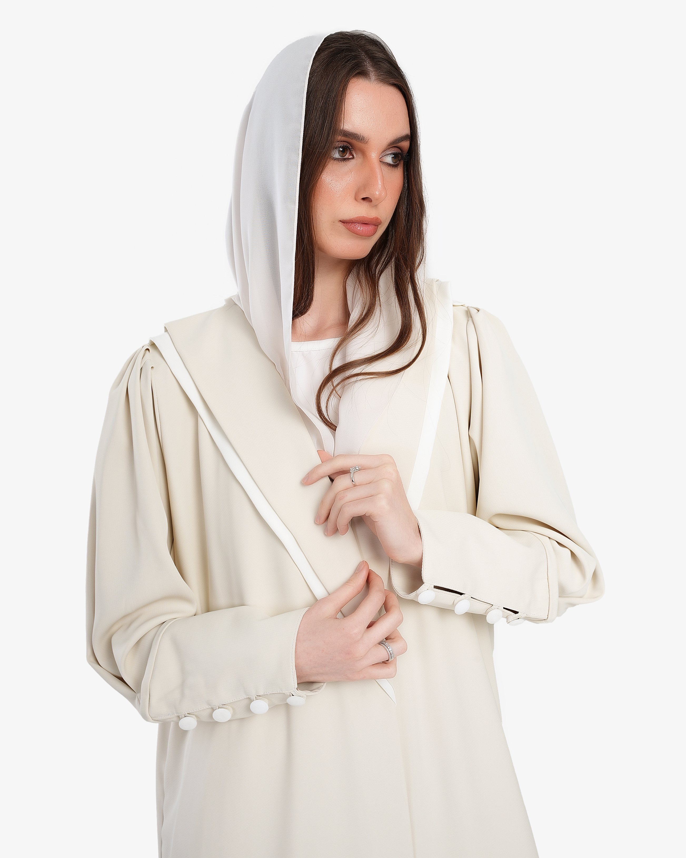 • يسمح اللون البيج بتنسيق العباية مع قطع وإكسسوارات بألوان متنوعة، ما يوسع خيارات ملابسك اليومية.