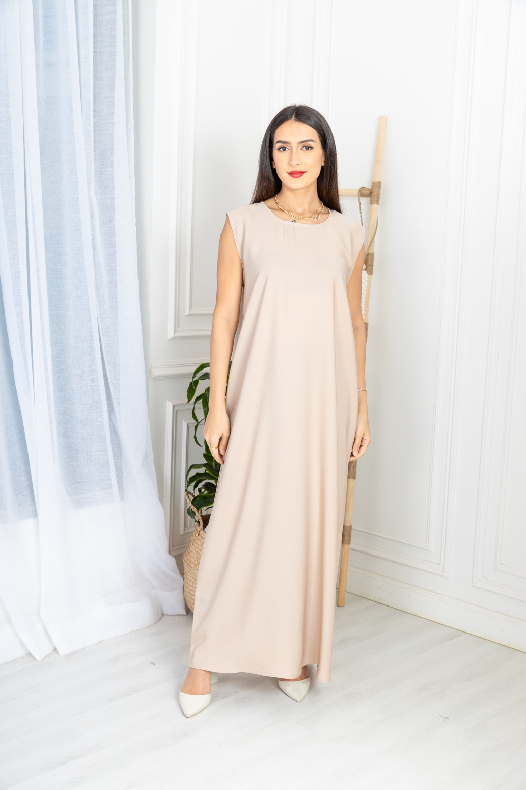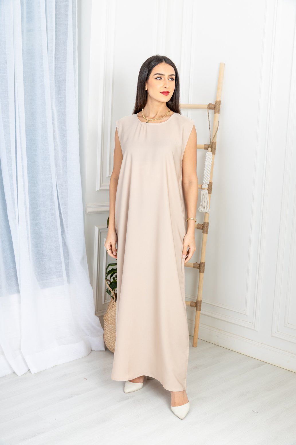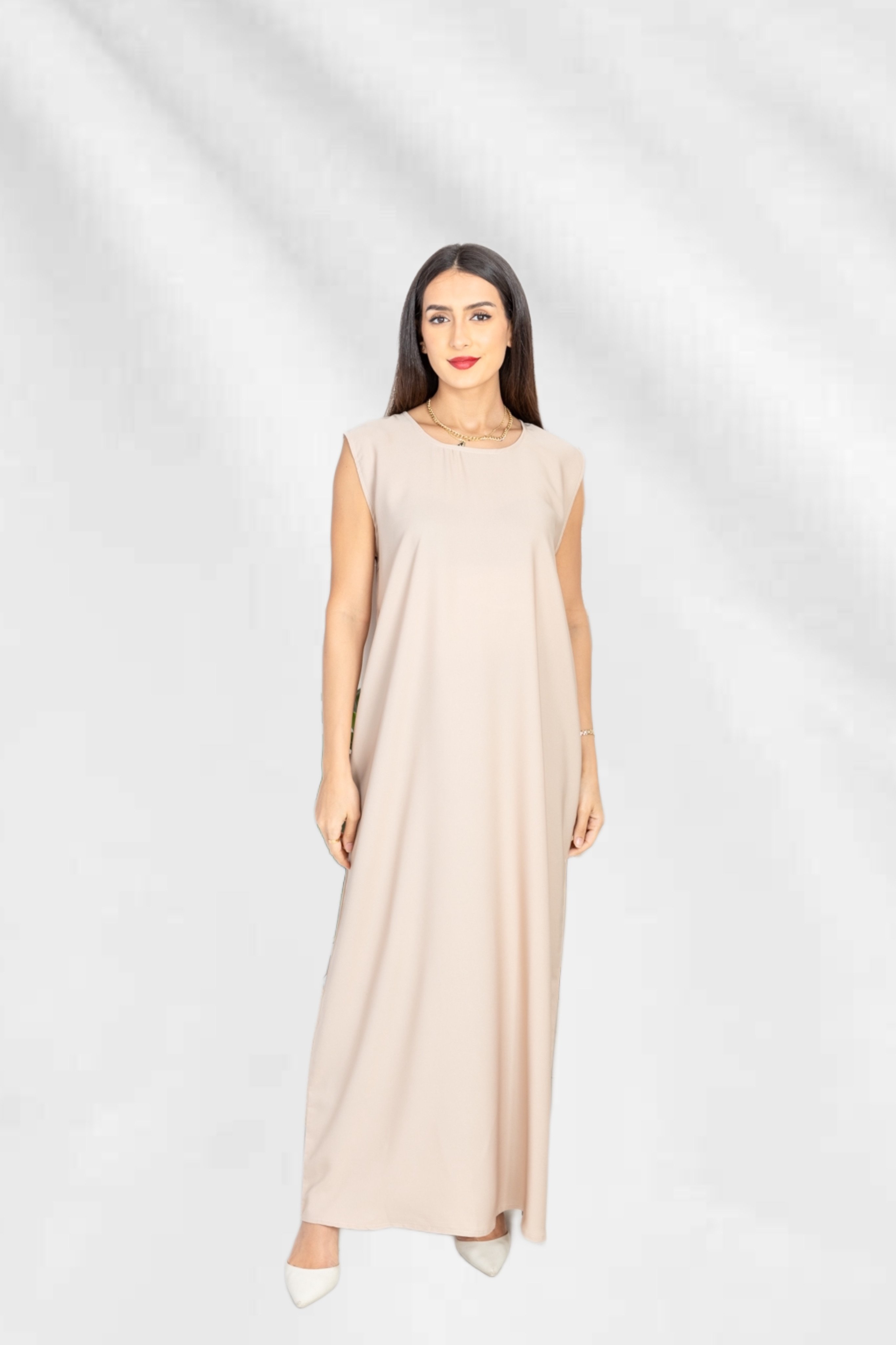 فستان داخلي تحت العباية قماش كريب لون بيج