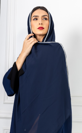 - عباية مع فستان ثابت في العباية قماش كريب تطريز كرستال مع شال سادة, يمكنك الحصول عليها من خلال متجر لاقيت عبر الرابط التالي من هنا.