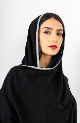 - عباية أسود قماش كريب سيراميك, عباية تطريز على القماش شك يدوي خرز, كما تتميز العبايه بتصميمها الانيق و الانثوي, تتميز بتصميم الكم المميز والمضاف له شك يدوي محلي, تتميز بالخامة العملية المريحة والمناسبة لمناسبات مختلفة.