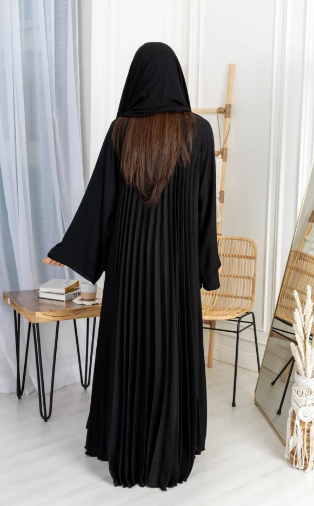 علاوة علي ذلك تتميز هذه العباية بتفاصيلها المتقنة والفريدة, لكي تضفي الكسرات جاذبية خاصة على تصميمها.