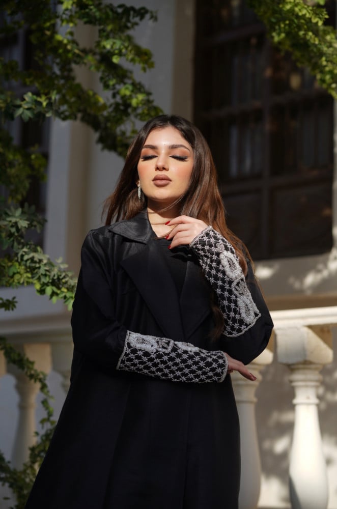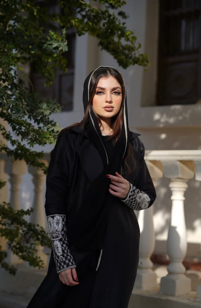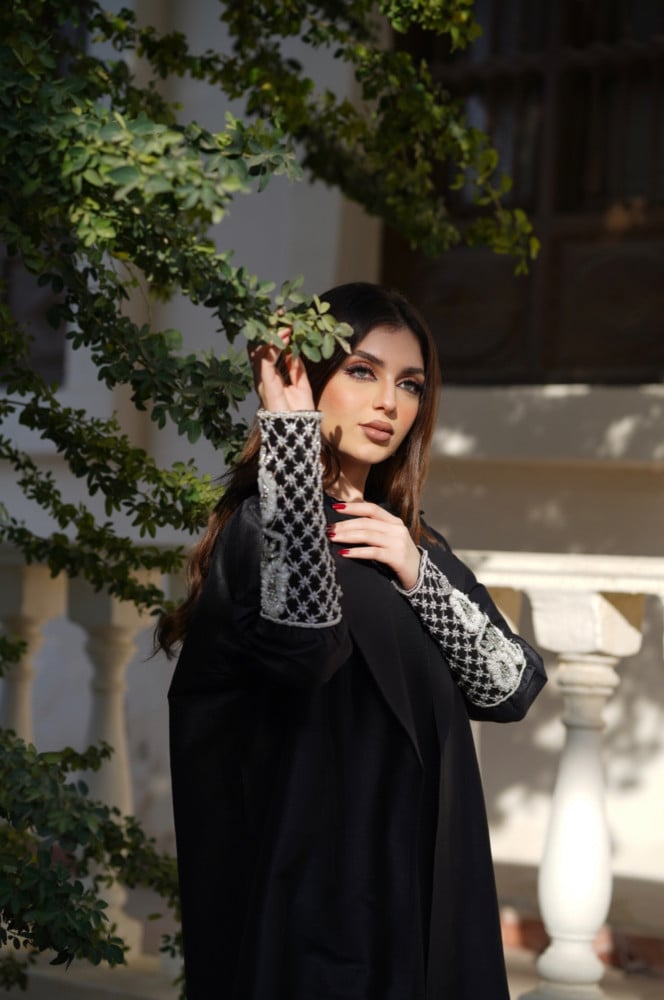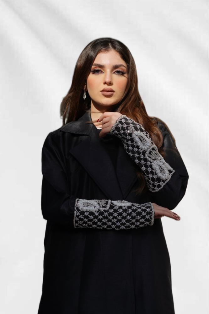 L011 - عباية تفتا أسود - تطريز .