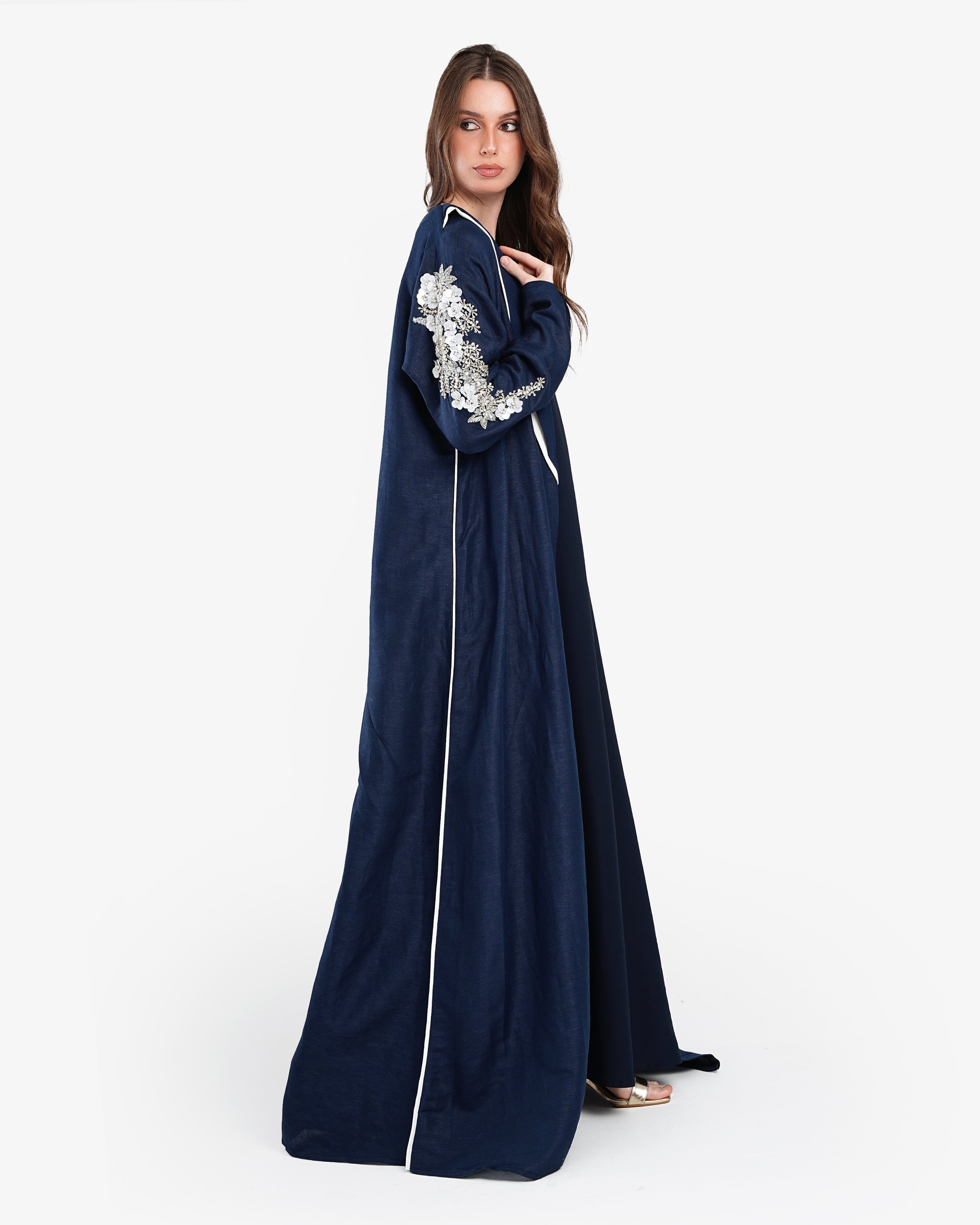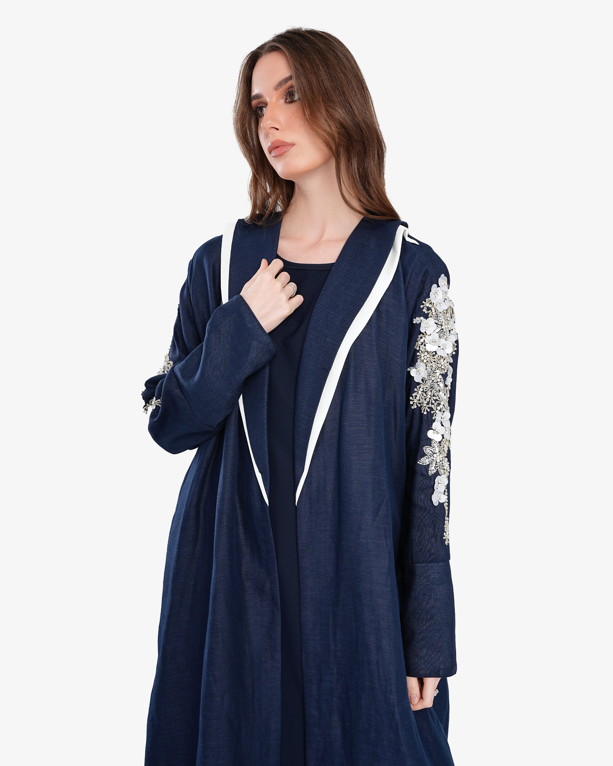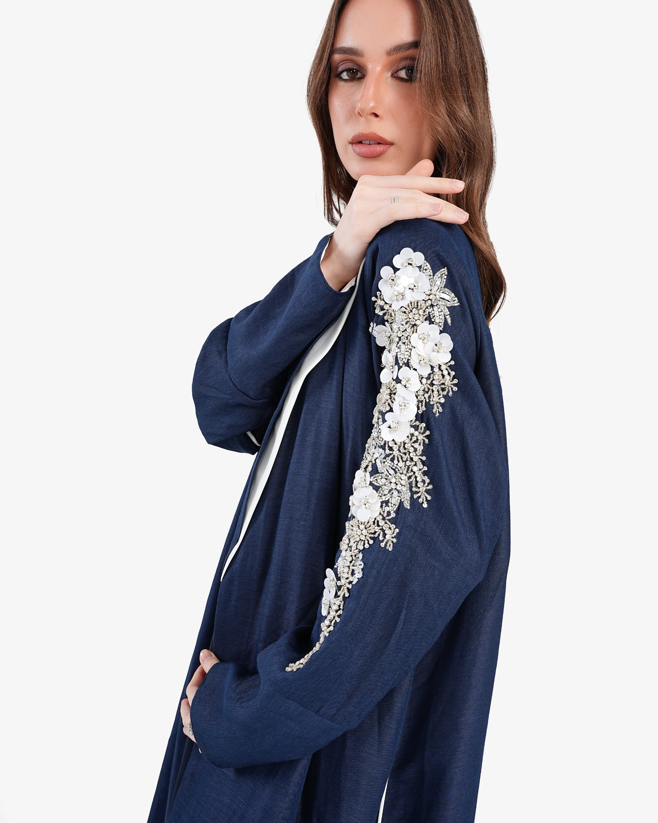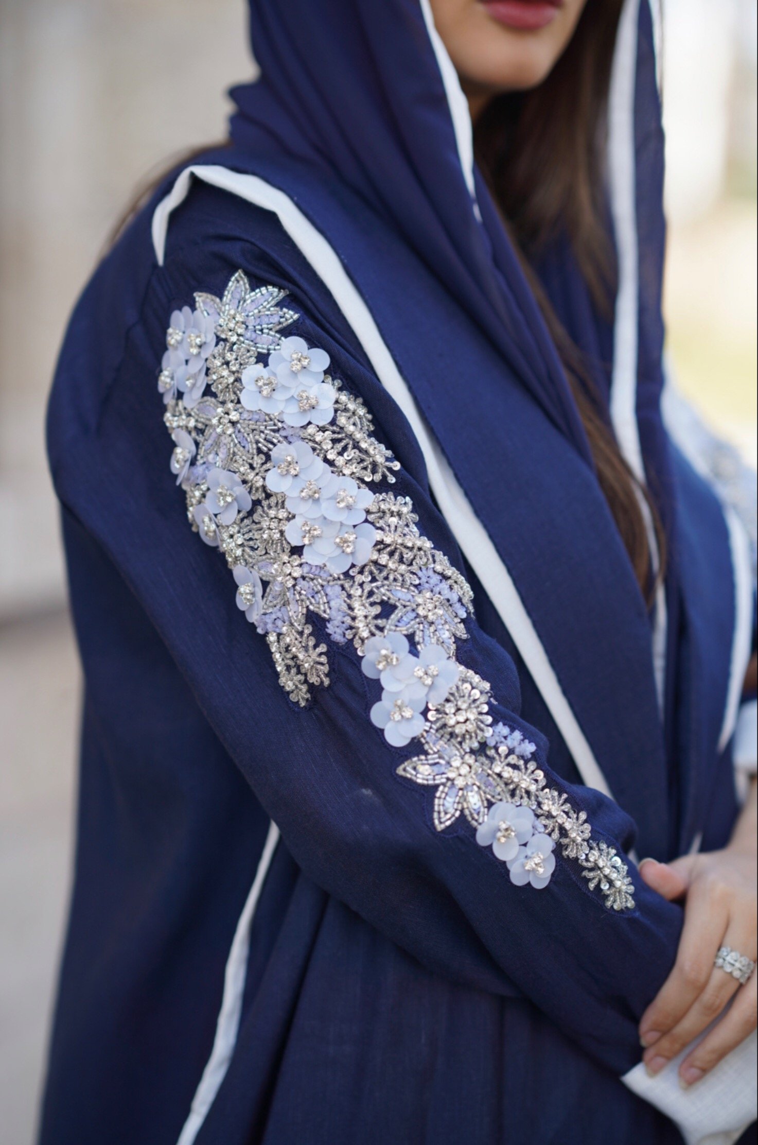 التطريز : شك كريستال في الأكمام بتنفيذ يدوي- محلي.