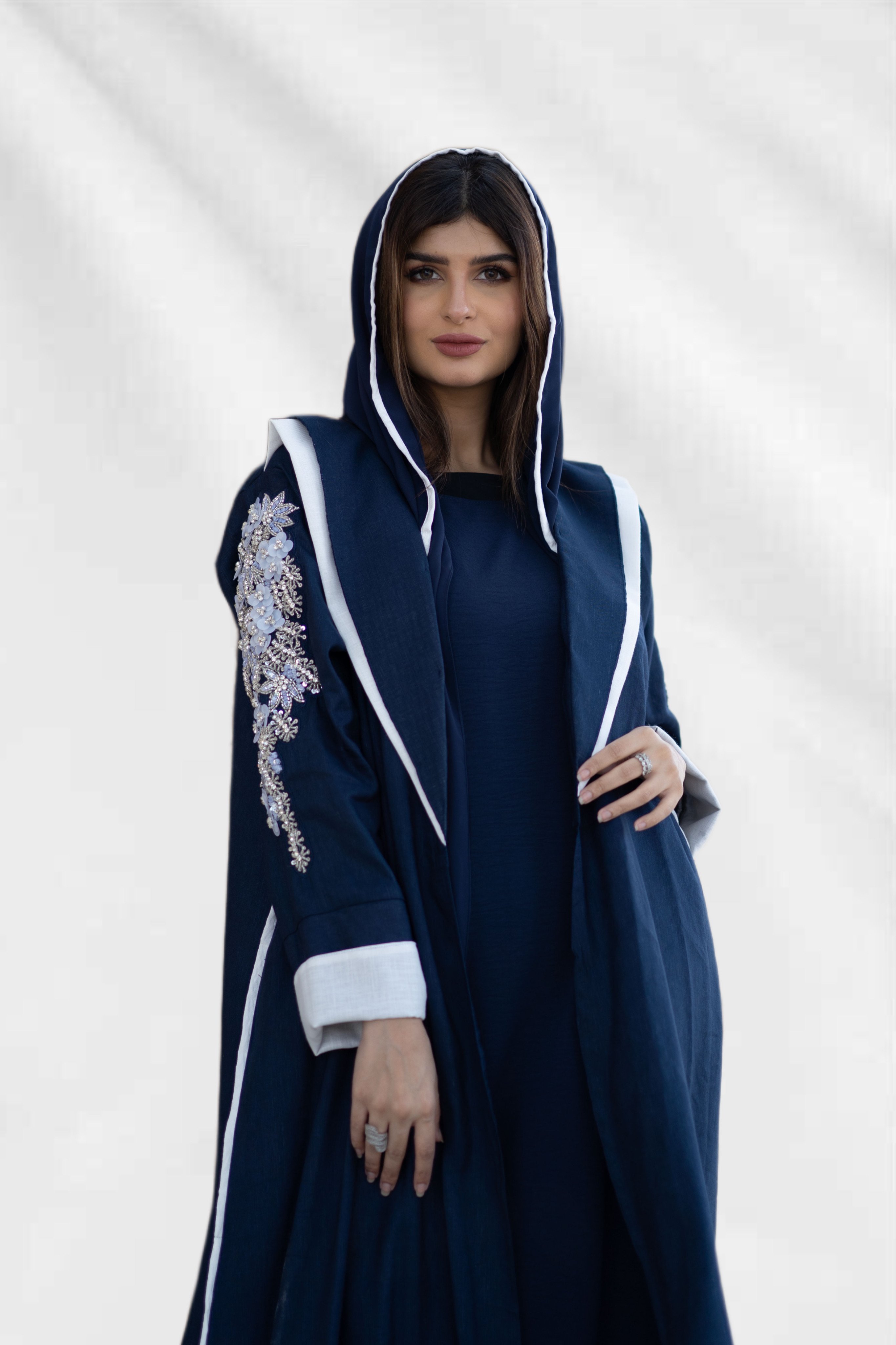 كحلي شك أبيض- قماش لينين رقم المنتج :L019 .