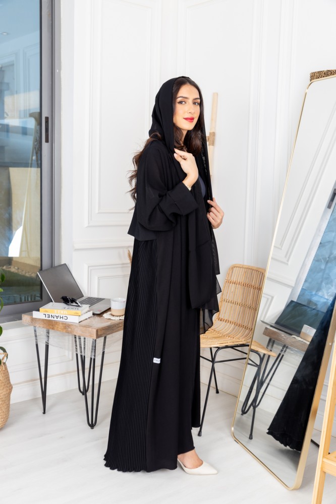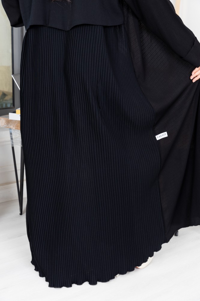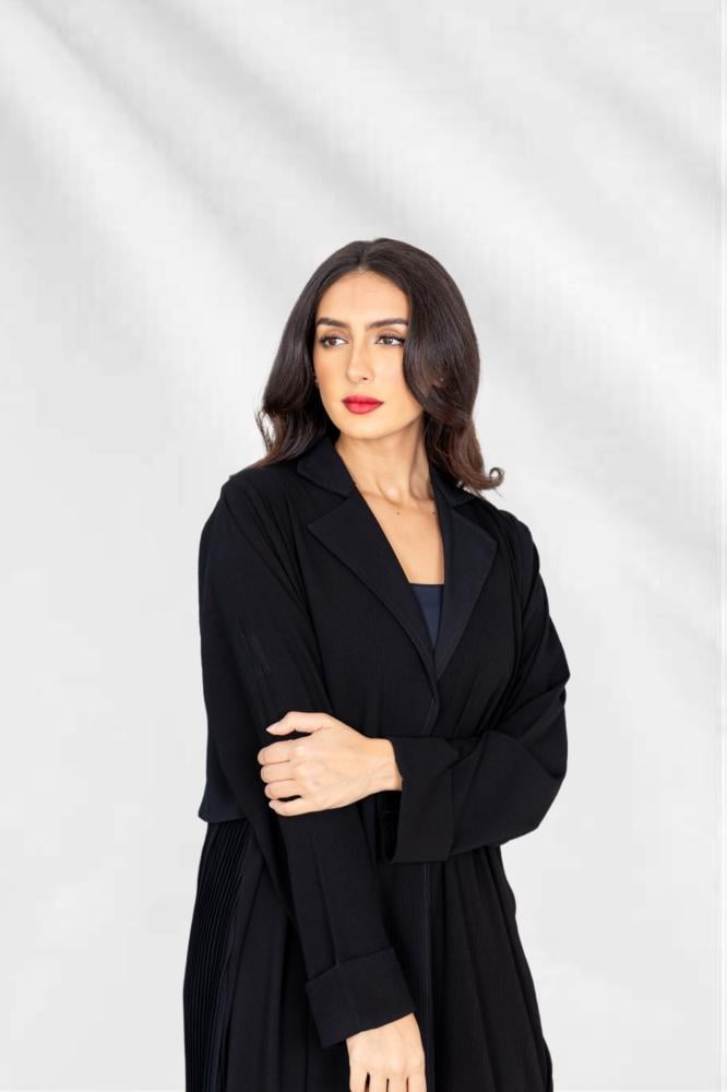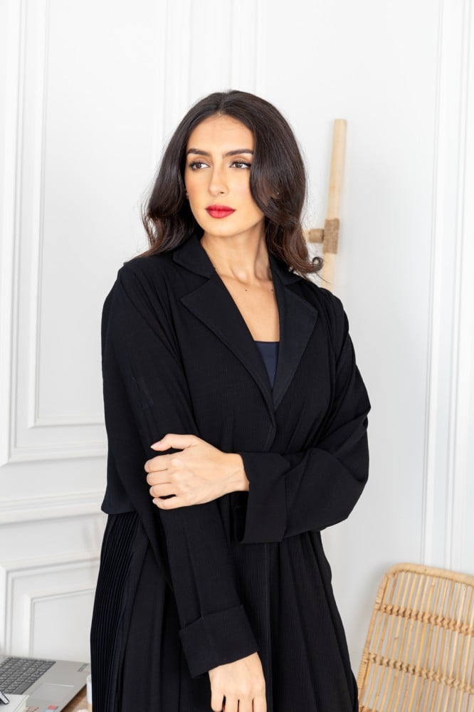 L071 - عباية كريب أسود - كسرات من الخلف .