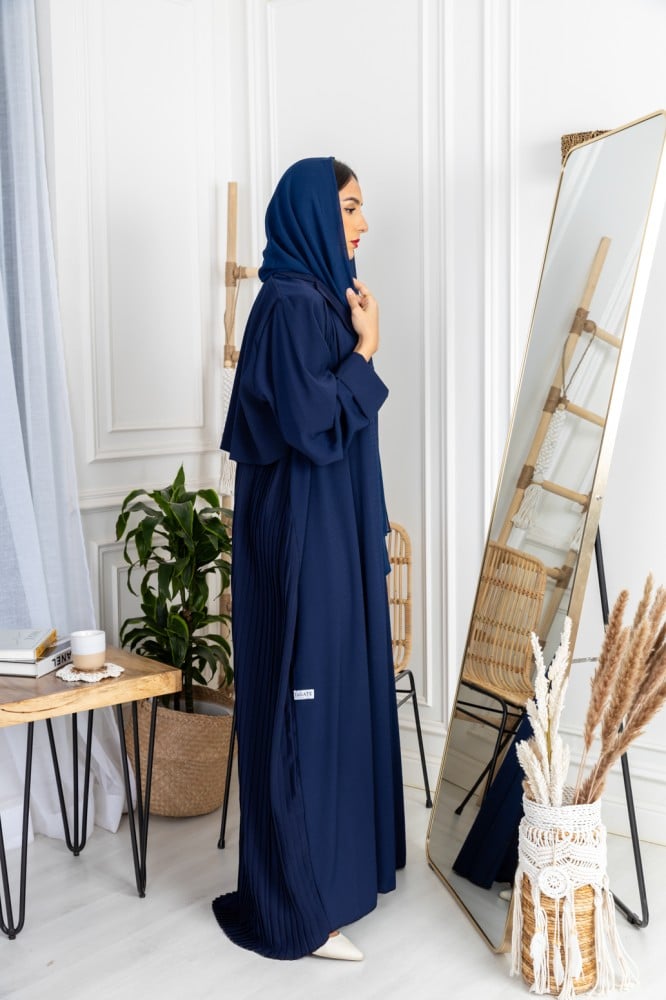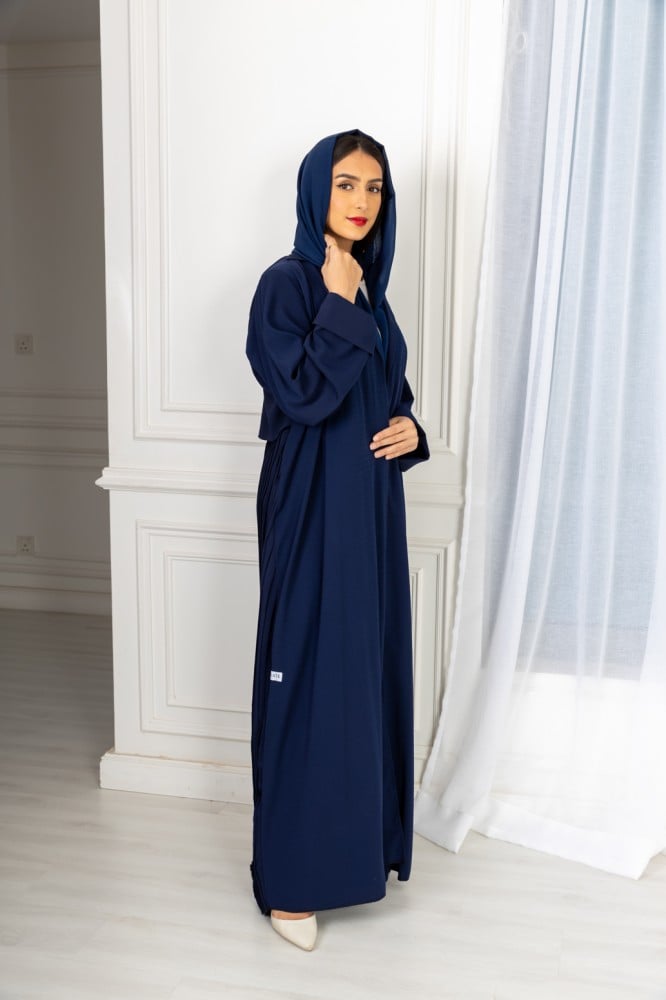L072 - عباية كريب كحلي - كسرات من الخلف .