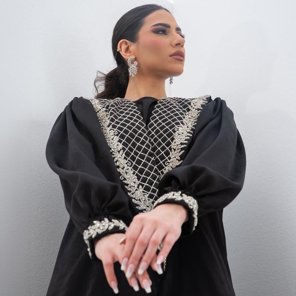 مميزات القطعه : عباية سوداء بتصميمها العصري الذي يعطيكي مظهرًا أنيق، وبتفاصيل تطريزها على الياقة وأسورة الكم التي تمنحك مظهرا راقي يناسب ذوقك .