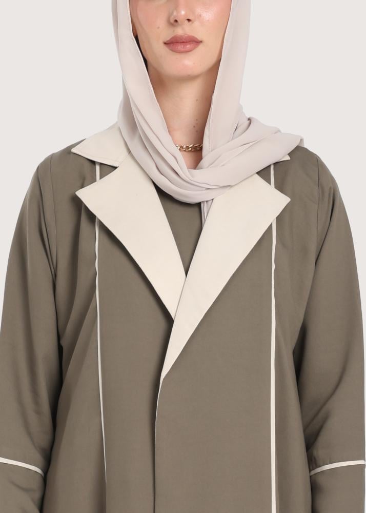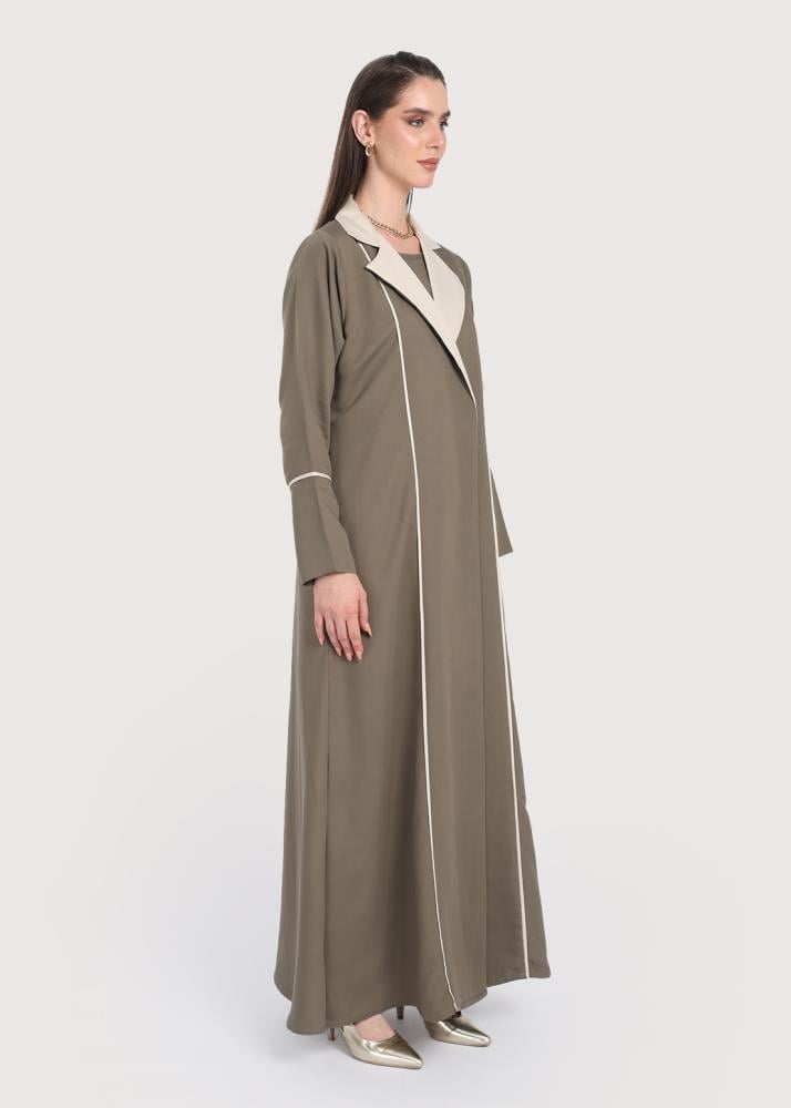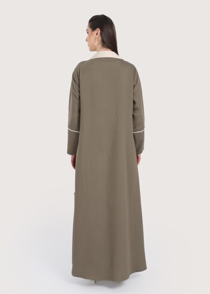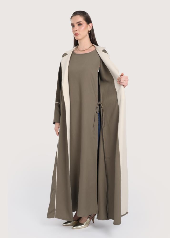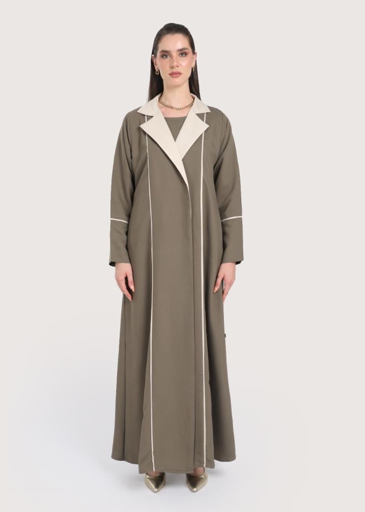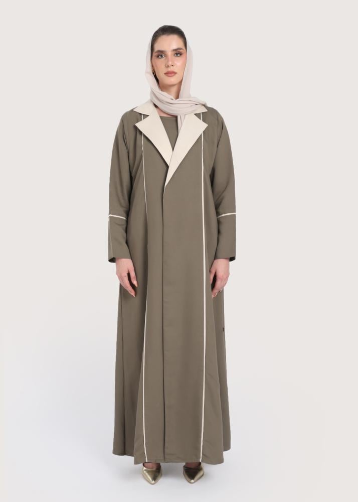 • لون العباية: زيتي أنيق يضفي طابعاً مميزاً.