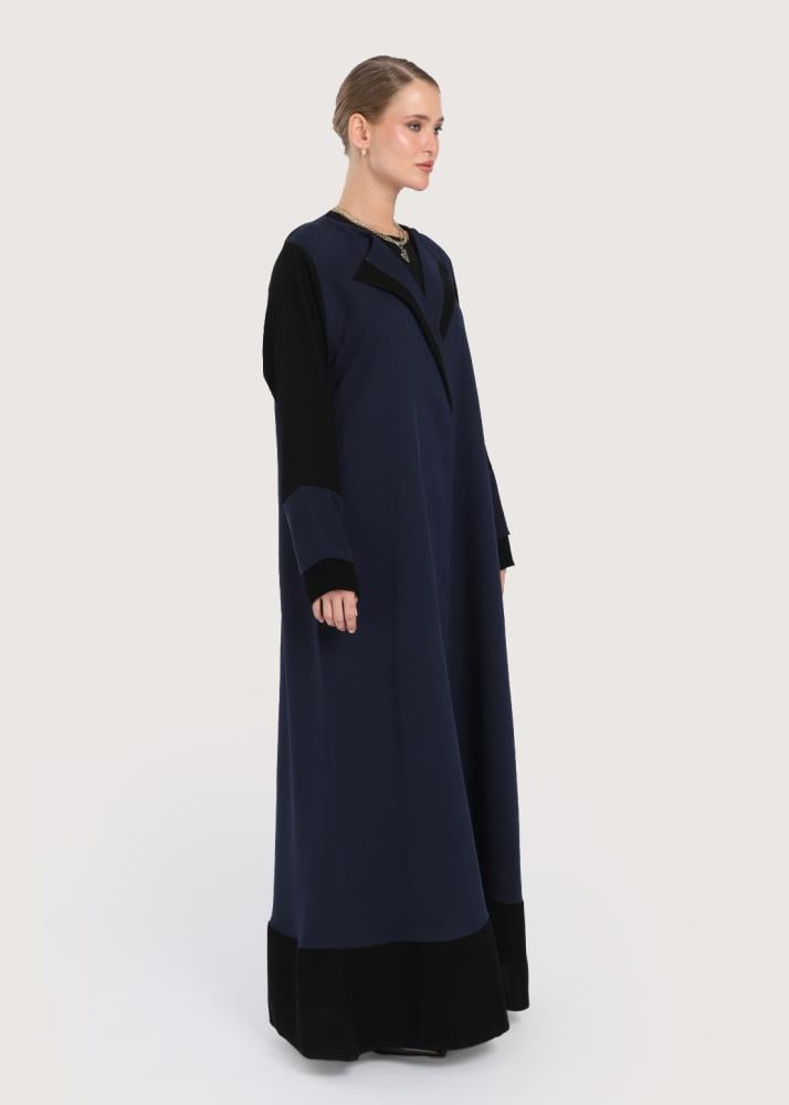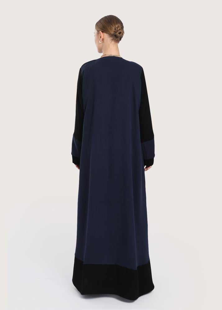 عباية اسود وكحلي بتصميم يجمع بين العملية والأناقة يظهر في هذه القطعة التي تحمل اللونين الأسود والكحلي، لتمنح مرتديها توازناً بصرياً وتناسقاً في الإطلالة، تم تصنيع هذه العباية بعناية من قماش الكريب المعروف بملمسه الناعم وخفته، مما يجعلها اختياراً موفقاً لمن يبحث عن الراحة والاستدامة في الاستخدام اليومي، تبرز خطوط التصميم على الأكمام والصدر بأسلوب مدروس، لتظهر تفاصيل المنتج دون تعقيد وتكسبه حضوراً عصرياً يتماشى مع أجواء العمل والمناسبات.