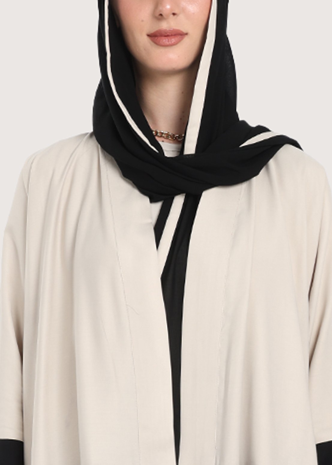 تمنح عباية صيف من الكريب البيج لمسة من الراحة لتجربة ارتداء يومية سلسة، سواء في الأيام الحارة أو المناسبات الخاصة. تكشف التفاصيل باللون الأسود الجذاب عن توازن مميز بين الطابع العصري والأناقة الكلاسيكية، بينما يضمن قماش الكريب الفاخر إحساسًا خفيفًا ومرنًا يناسب الحركة طوال اليوم. التصميم البسيط يسمح بتنسيق العباية بطرق متنوعة وفق احتياجاتك الشخصية وتفضيلاتك في الإكسسوارات.