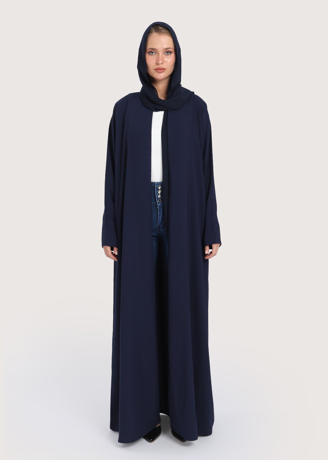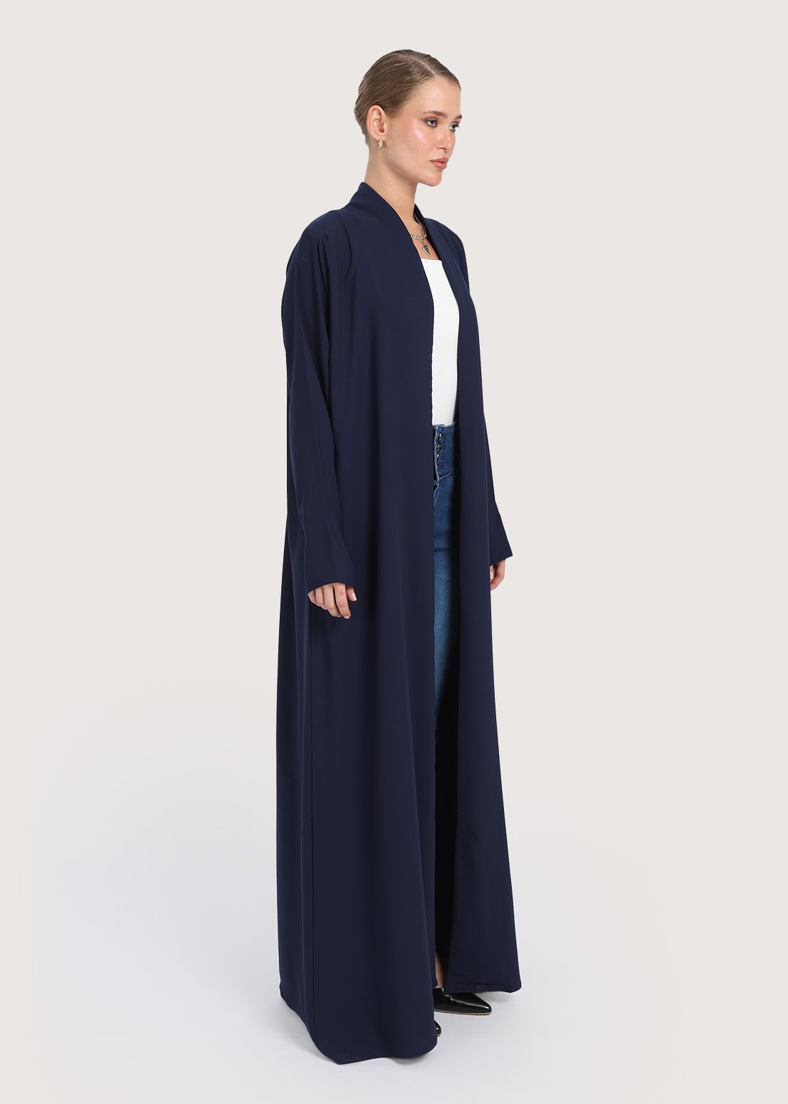 - يتيح التصميم المفتوح خيارات متعددة لارتداء قطع أخرى أسفل العباية.
