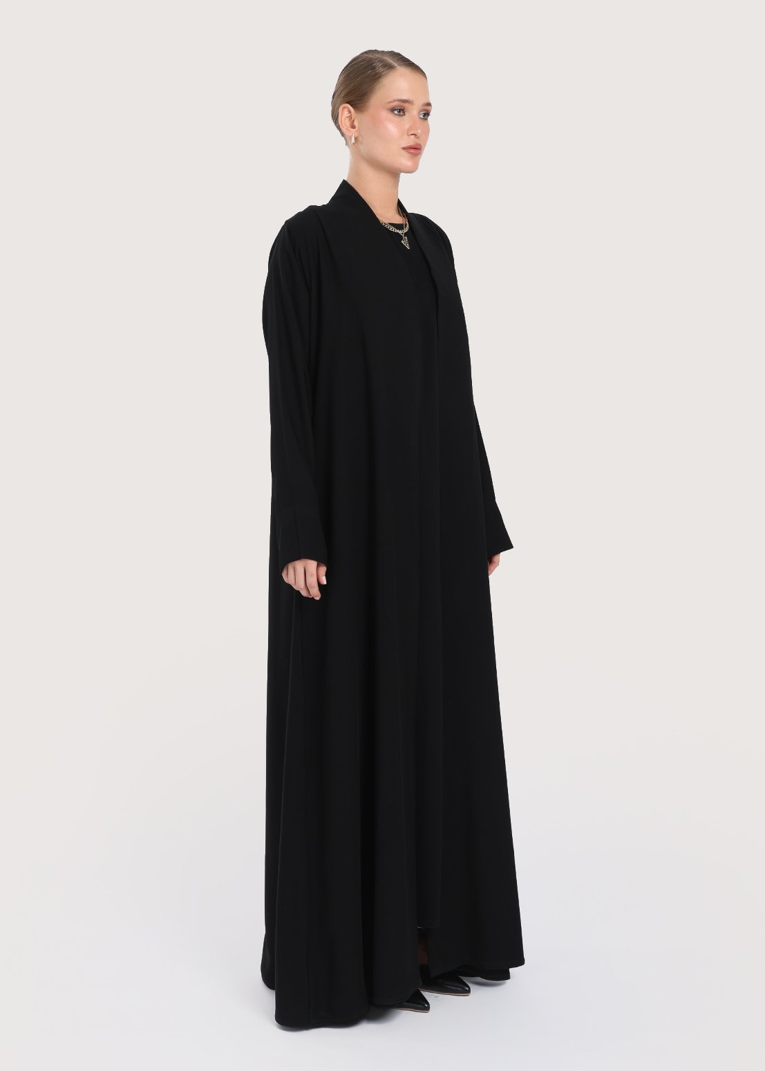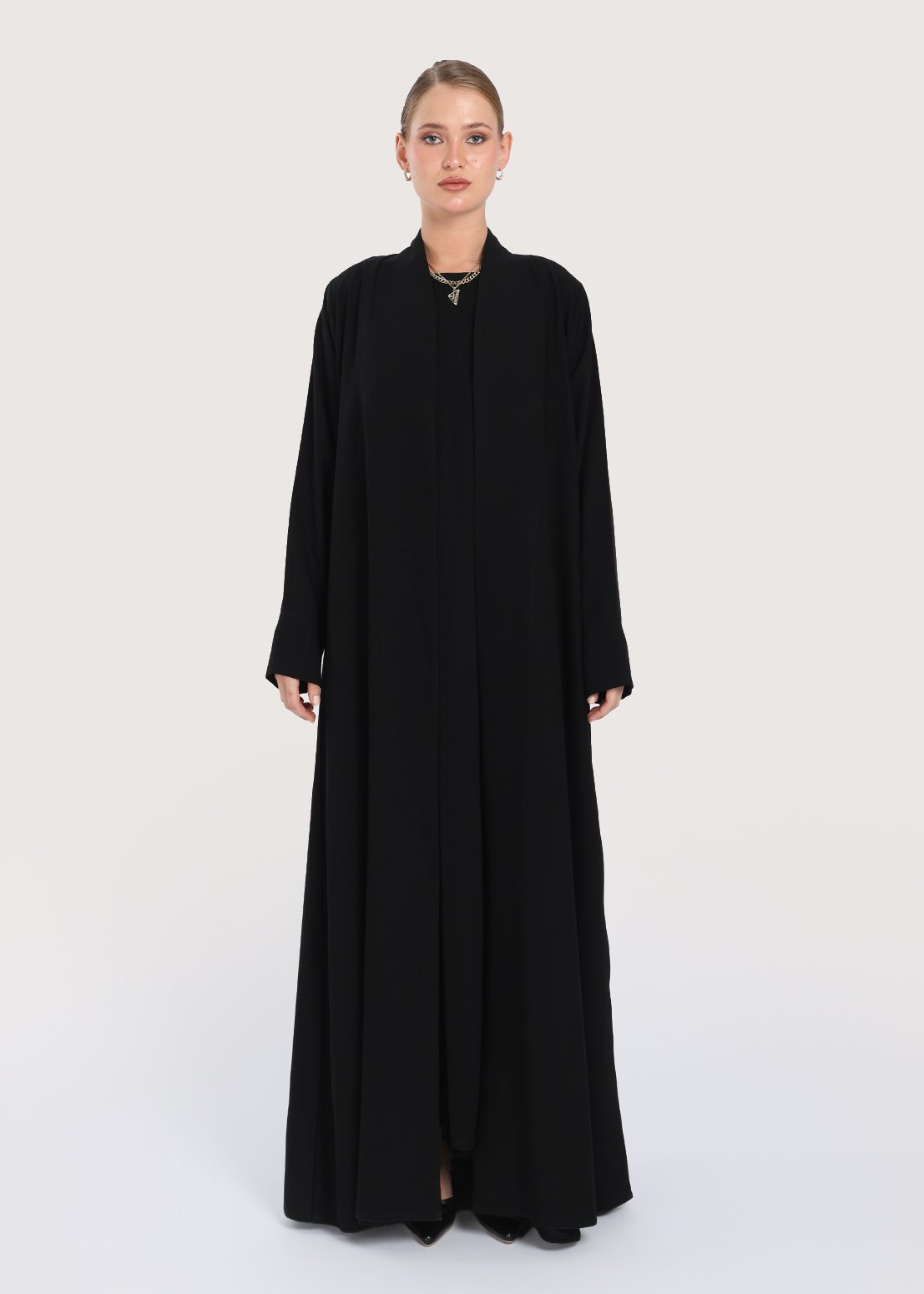 تجمع هذه القطعة بين البساطة والتصميم العصري، حيث تم اختيار قماش الكريب بعناية ليمنح تجربة ارتداء مريحة طوال اليوم. تبرز عباية سوداء سادة بلونها الكلاسيكي الذي يلائم أجواء العمل والمناسبات الاجتماعية، مع تفاصيل دقيقة تتيح سهولة في الحركة. توفر العباءة السوداء السادة حلاً عملياً لعشاق الأناقة الذين يبحثون عن الظهور بأبسط صورة دون تعقيدات.