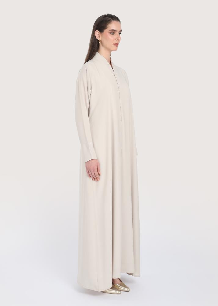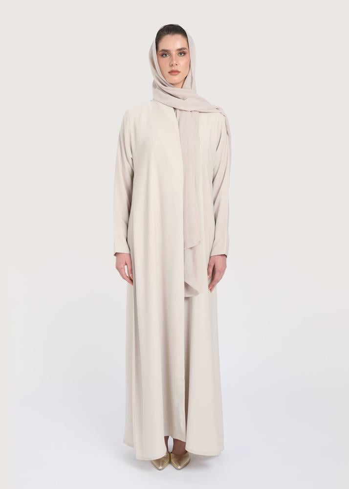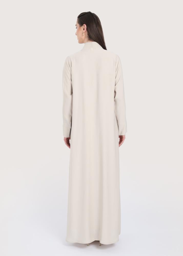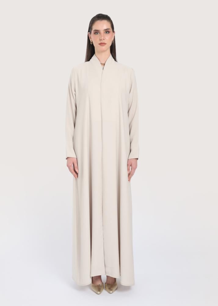 • اللون البيج الفاتح يضفي طابع الهدوء ويتيح تنسيق العباية مع إكسسوارات متعددة.