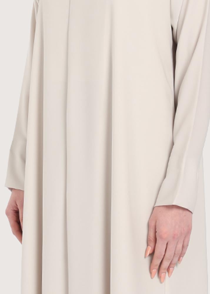 • تصميم عباية بيج فاتح يمنح شعورًا بالخفة مع السماح بحرية الحركة طوال اليوم.