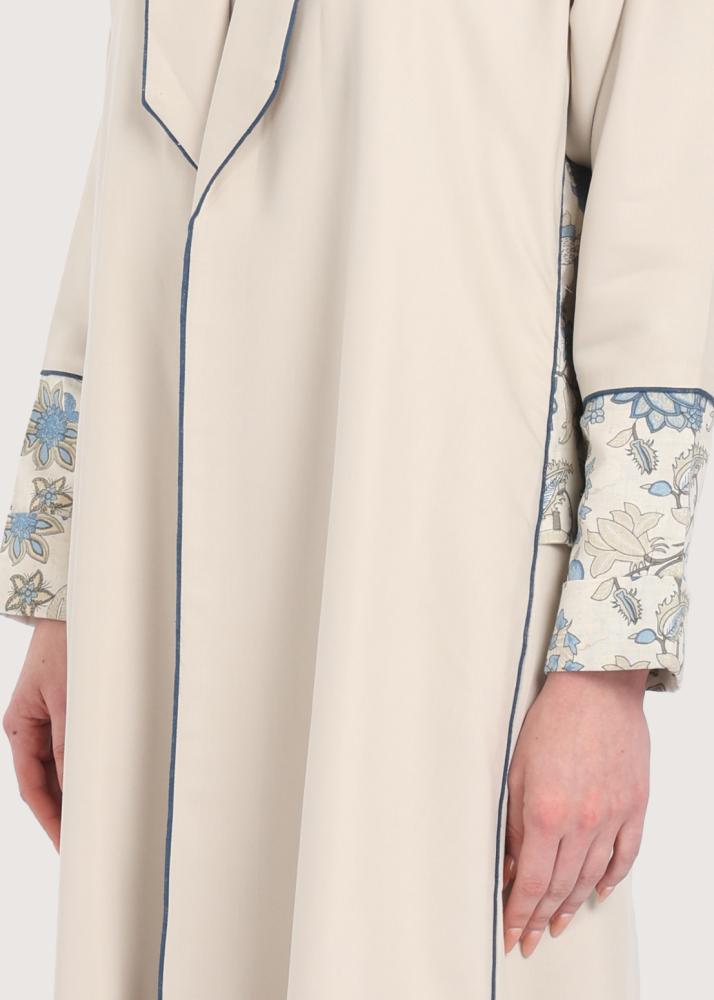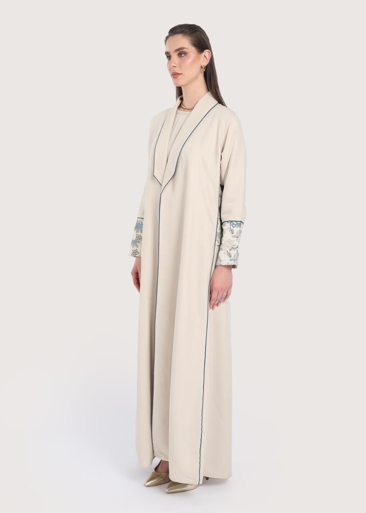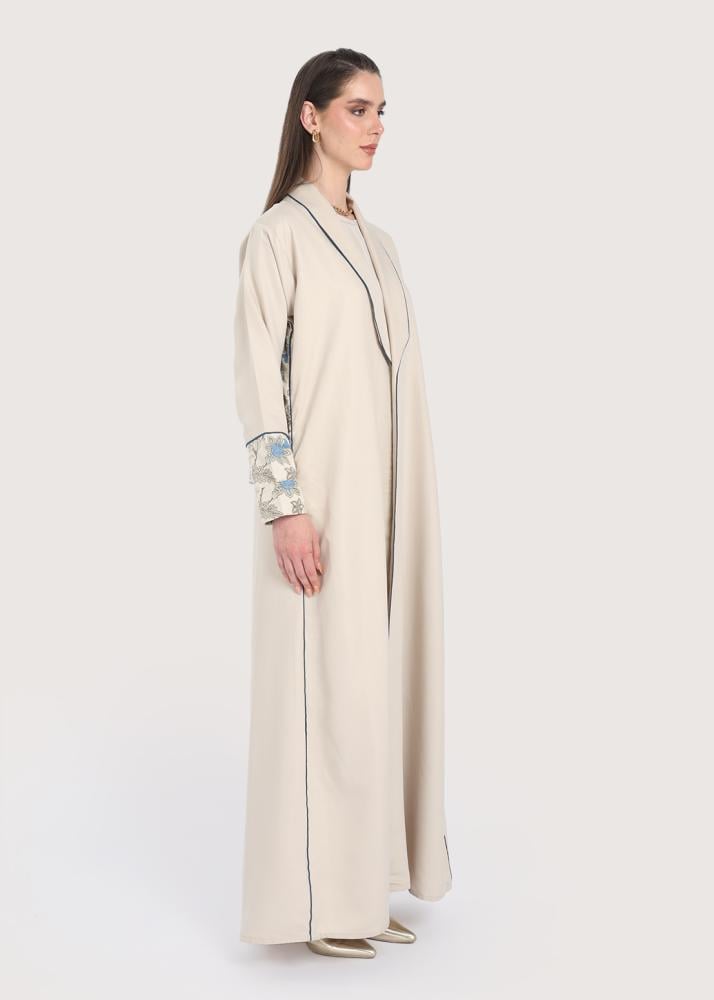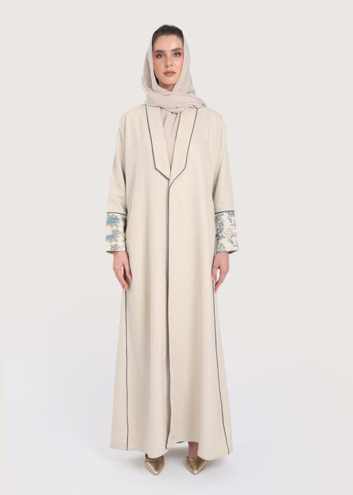 - الأكمام مزينة بتطريز أزرق يمنح العباءة شخصية مميزة عند ارتدائها.