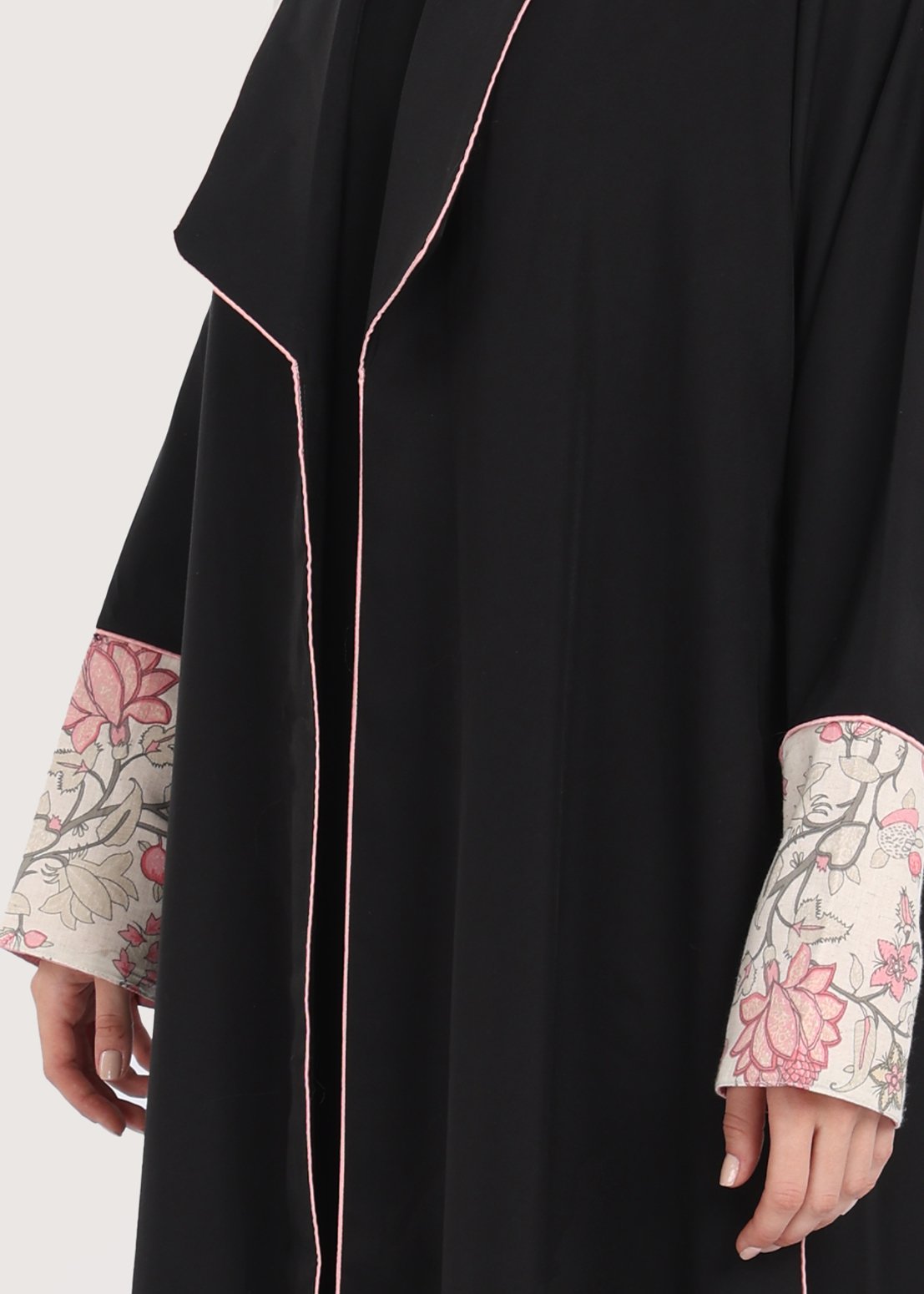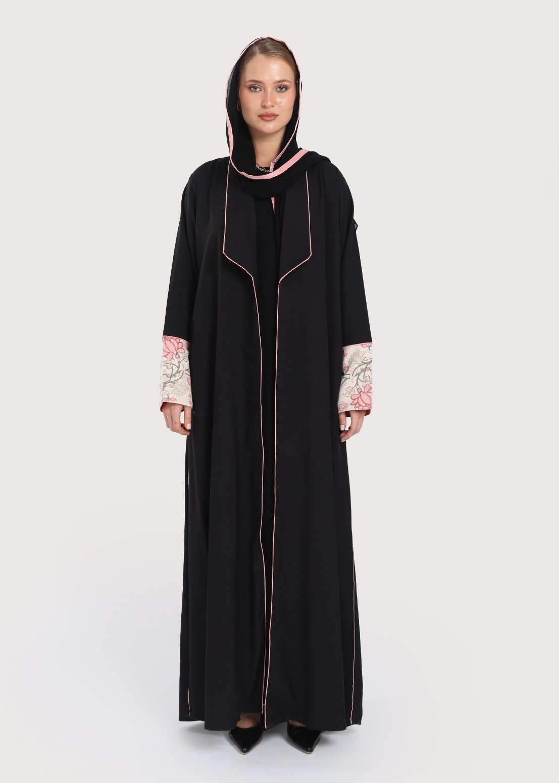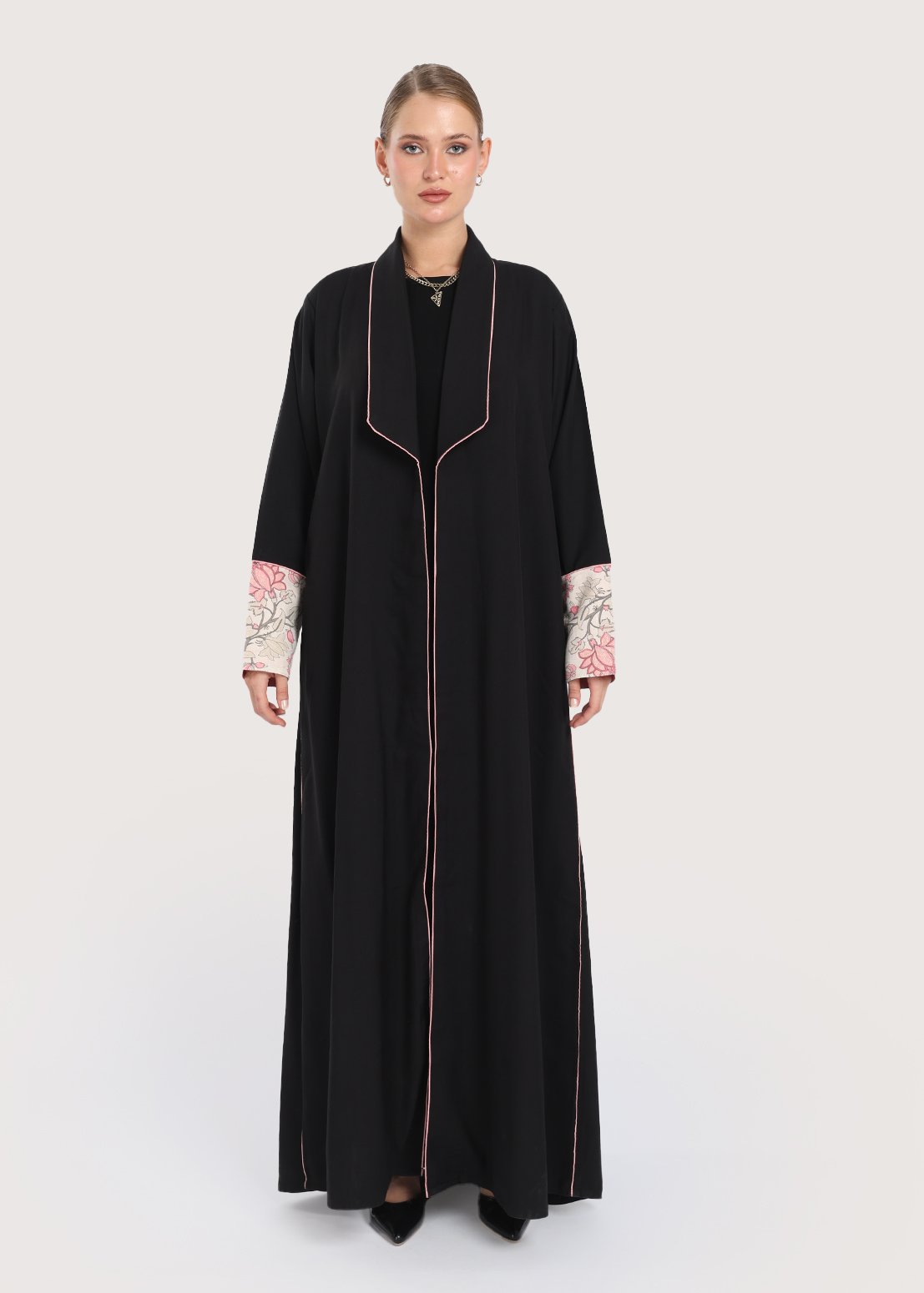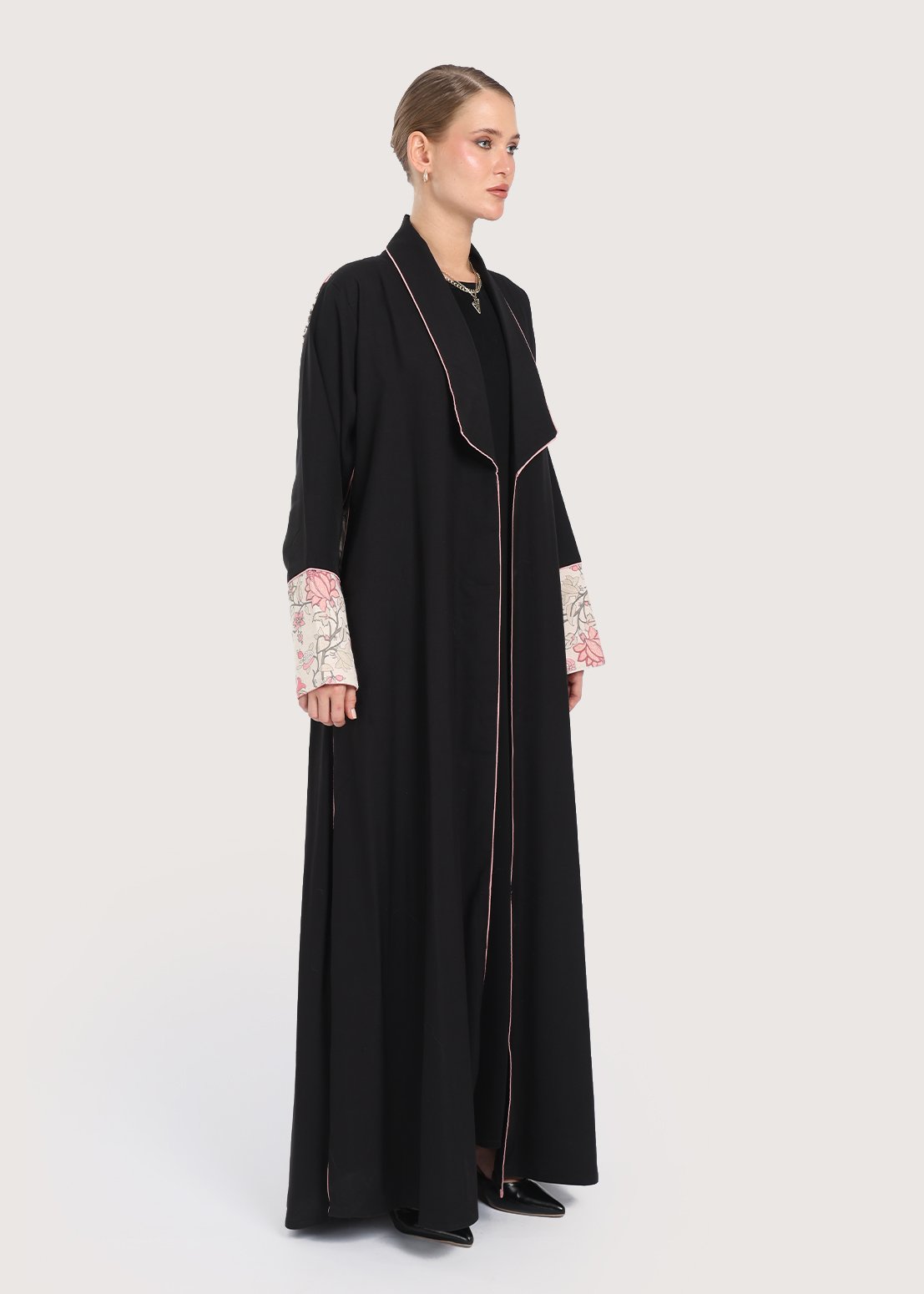 - عبايات سوداء تطريز على الأكمام تضيف بعدًا بصريًا أنيقًا يجعل التصميم يبرز دون مبالغة.
