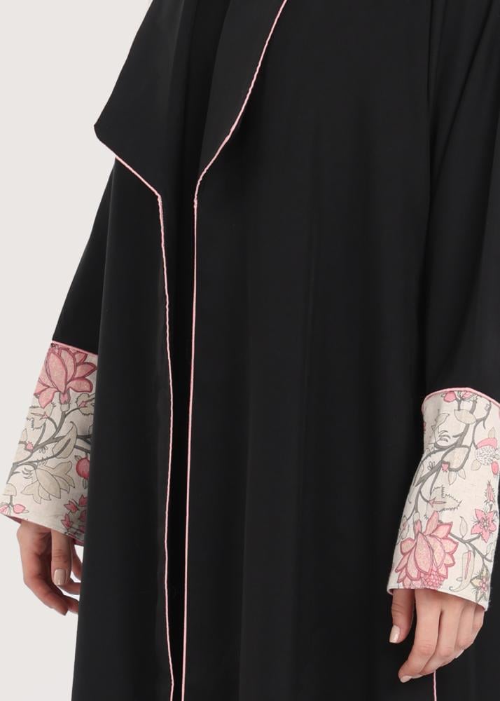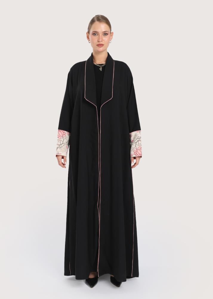 - تمنحك عباية سوداء مطرزة لوحة لونية داكنة تناسب تنسيقات متنوعة مع الحقائب والأحذية والإكسسوارات.