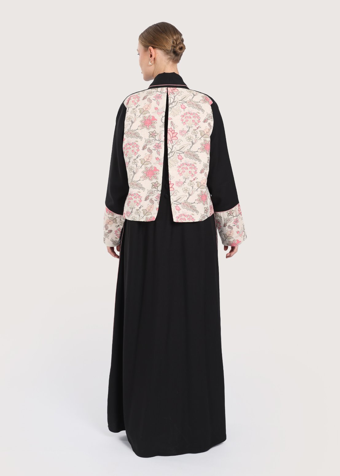 - التصميم: تفاصيل زخرفية على الأكمام وطول الحواف تمنح طابعًا عصريًا