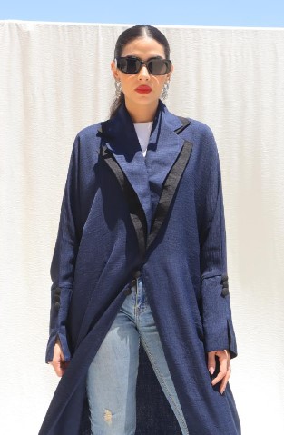 - Navy blue and black abaya made of royal crepe fabric for abayas, ceramic and Japanese washed silk, crystal embroidery on the sleeves. You can view more details through the following link and buy it now from here .